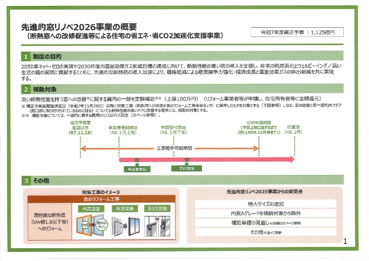 実は、もう2026年度の窓リノベ事業スタートしてます※PDFご確認ください