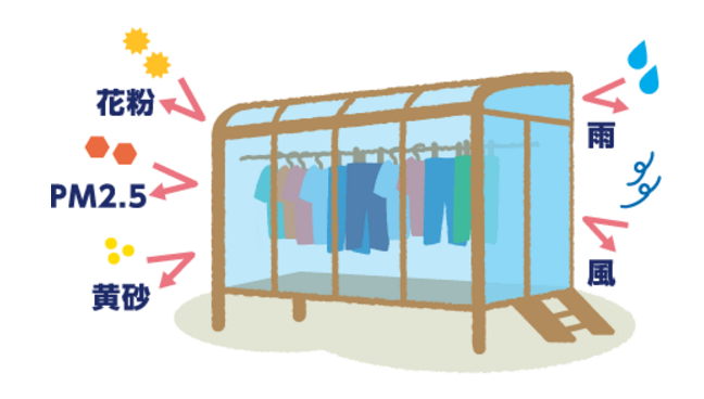 干せるのは勿論、秋は夕涼み空間・冬はあったか空間