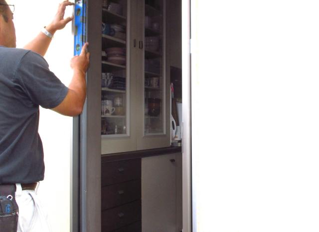ドア本体を吊り込んでみて、建て付けの確認をします。