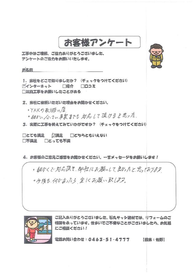 ・細かくご対応頂き、御社にお願いして良かったと思っております。 ・今後も何かあったら、宜しくお願い致します。