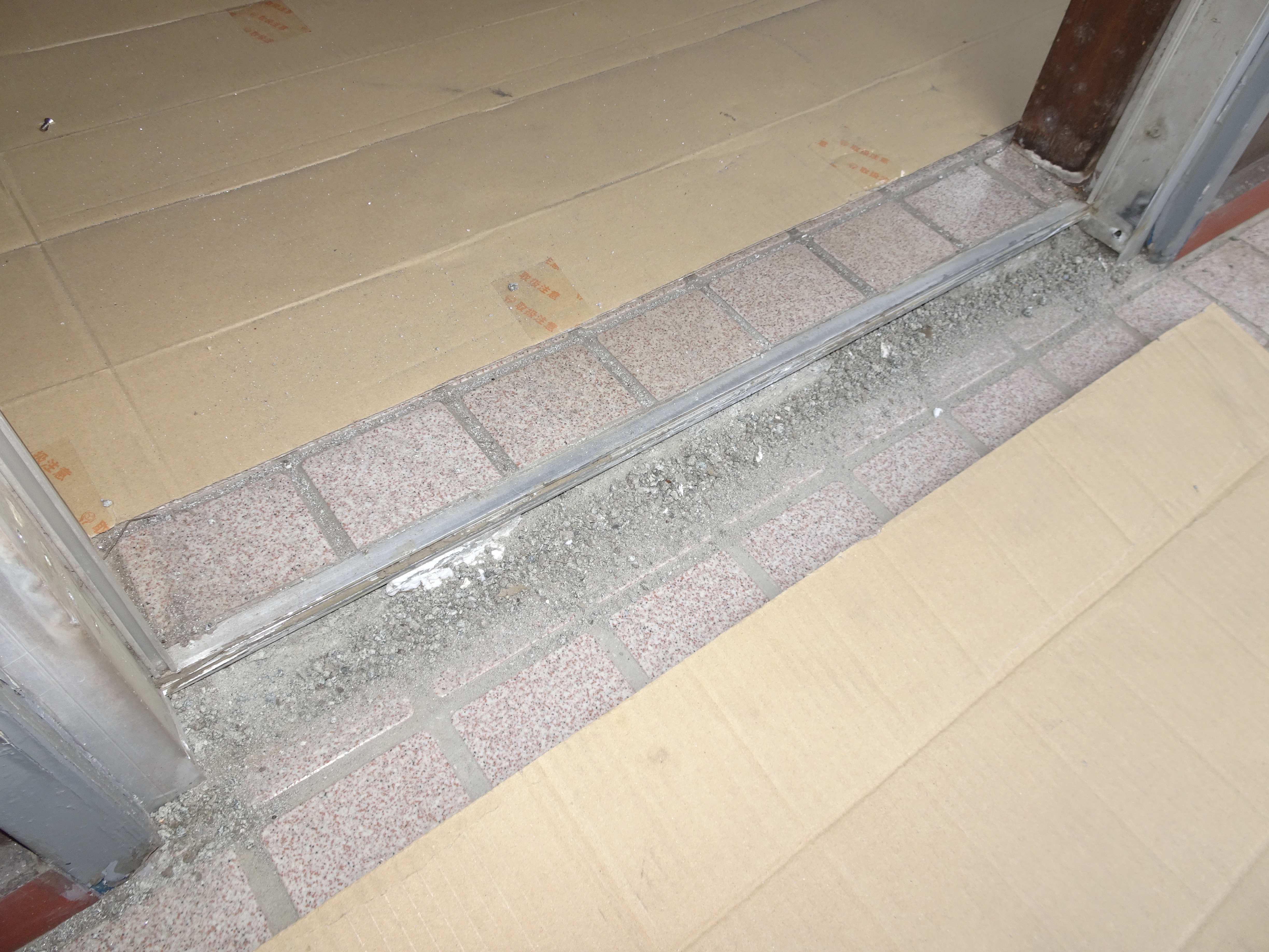 通常は下枠を撤去しませんが 段差が高くなってしまう場合は 今回のように下枠を取り外します。