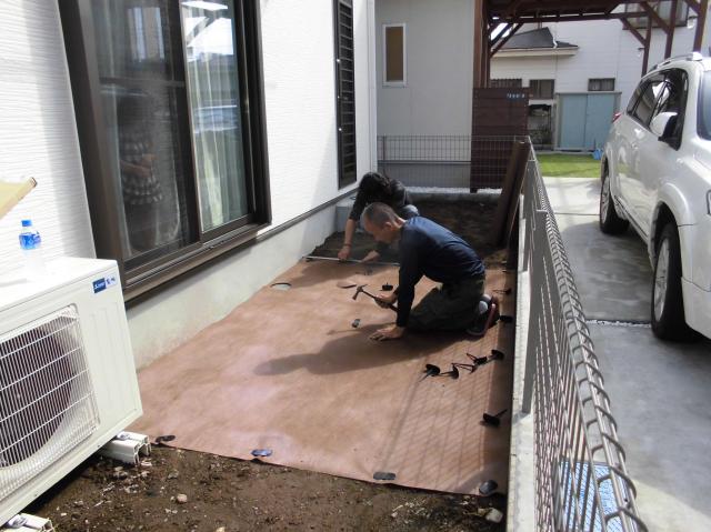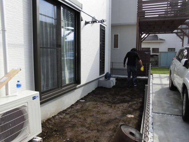 、というご依頼でした。防草シートも貼り、雑草を抑えます。
