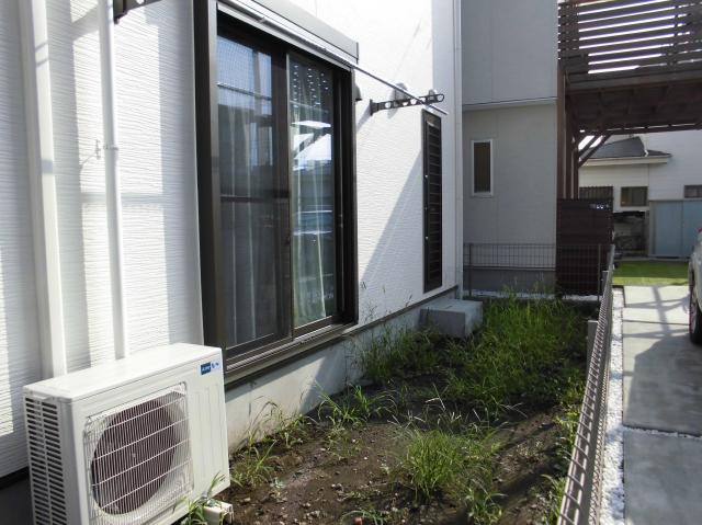 陽の当らない場所は、雑草は生えにくいですが、