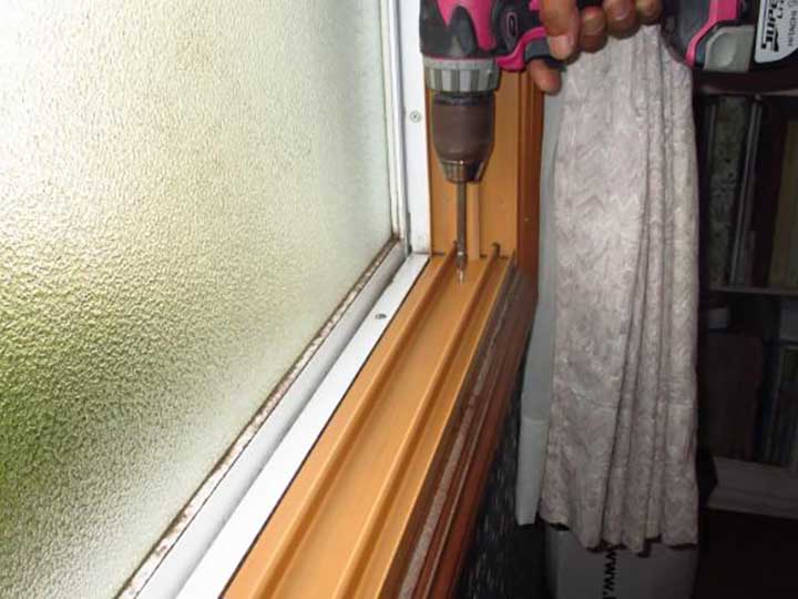 【ピアノ室・北】窓枠(木枠)の内側に7㎝巾の樹脂枠を四方ビス止めしていきます。Y様の窓枠巾はちょうど7㎝でしたのでふかし枠は設置不要でした。樹脂は熱を伝導しにくい性質をもっているので、外の熱は室内側に伝わりにくく結露の軽減効果も絶大です♪