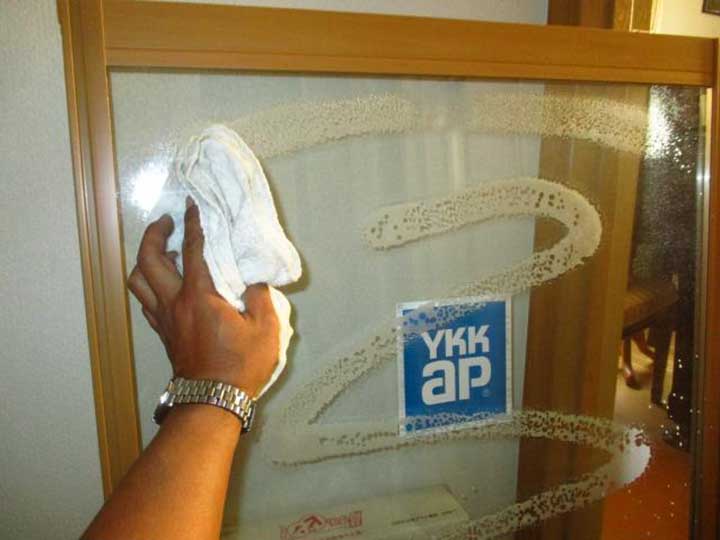 【ピアノ室・北】写真の窓障子はめ込んでしまうと、裏側が掃除しにくいので、窓障子をはめ込む前には必ず清掃をしておきます。お客様によっては、ずっと裏は掃除しないと言う人も、いらっしゃるので気をつけて綺麗にします^_^;