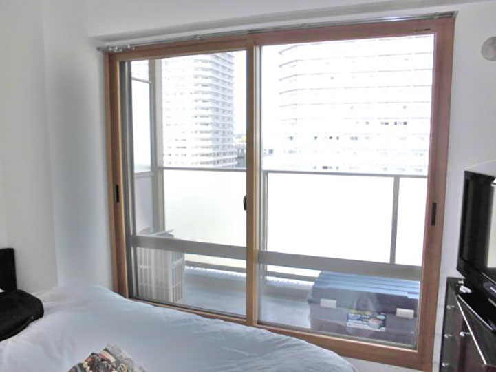 【寝室】北側寝室の引き違い窓です。「マンションですが北側は寒い・・」と皆さんおっしゃられます^_^;室内側に内窓プラマードUを設置して断熱させていただきます。