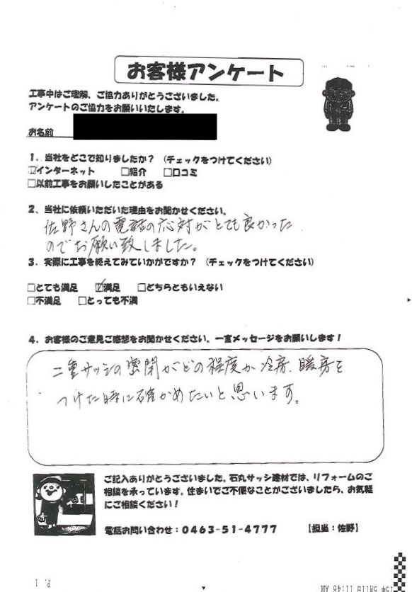 アンケート・撮影協力も有難うございましたm(__)m何かありましたら、またご相談下さい。
