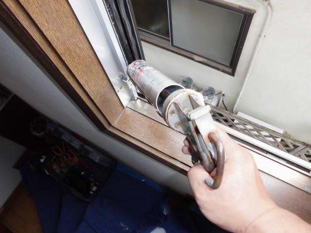 写真は防水の為のシーリングを施しているところです。