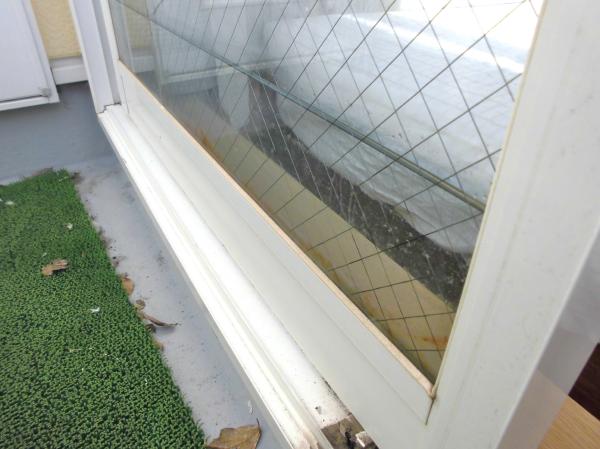 複層硝子なので、中に雨水が貯まってすごい事になって