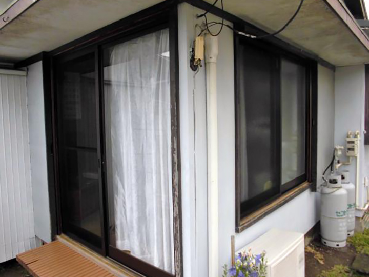 | ご提案内容 | リビングの木製引戸(窓)と雨戸、二か所をアルミサッシに交換。 |