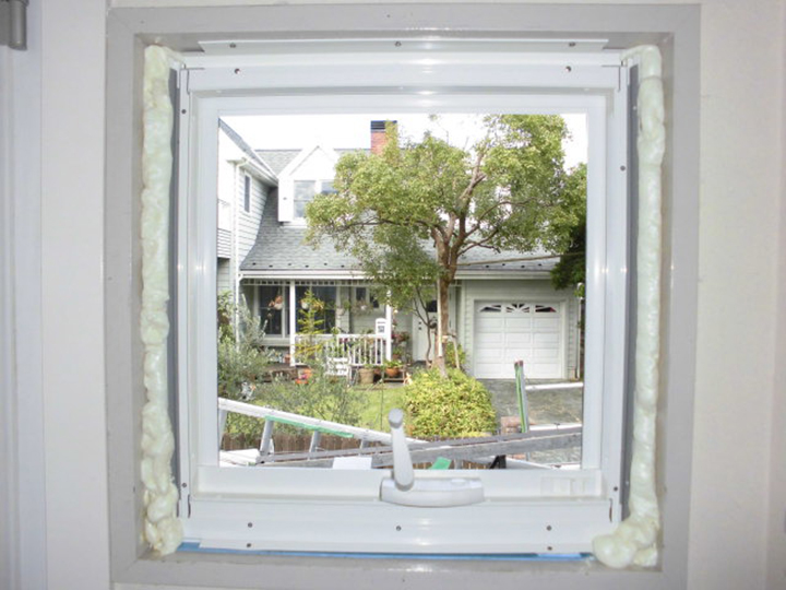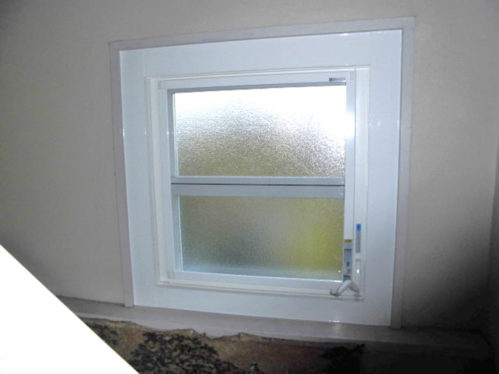 【1階廊下】YKKのかんたんマドリモで窓交換です。カバー工法なので外壁・内装工事は不要です。既存枠の内側にパカット新しい窓を設置します。隙間には、断熱材を注入して、断熱効果を高めます