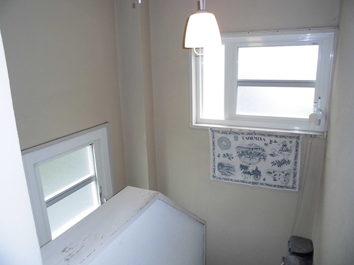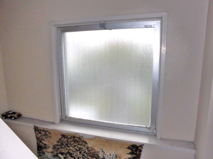 【階段B】こちらも階段の窓、引き違いサッシです。ちょっと高い位置にあったので使いずらく開閉困難だったそうです^_^;