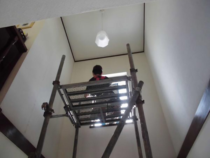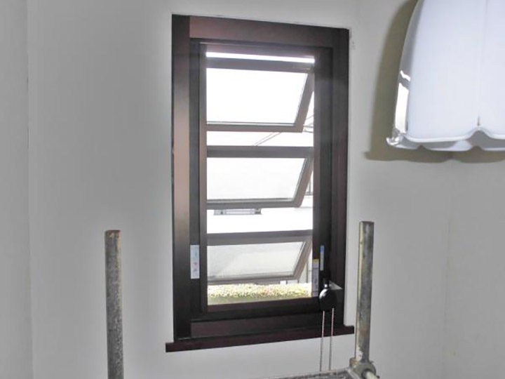 | ご提案内容 | 玄関上・吹き抜けの開かない窓(はめ殺し)から採風窓への取り替え工事。 |