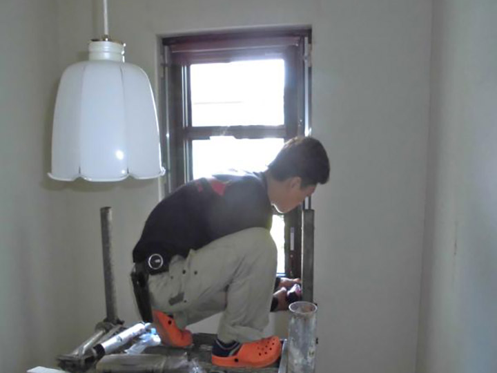 朝一番に足場を設置して、九時半頃から窓交換スタート。通常この大きさの窓交換ですと一人ですが、今回は私と大曲二人で施工していきます(^_^)