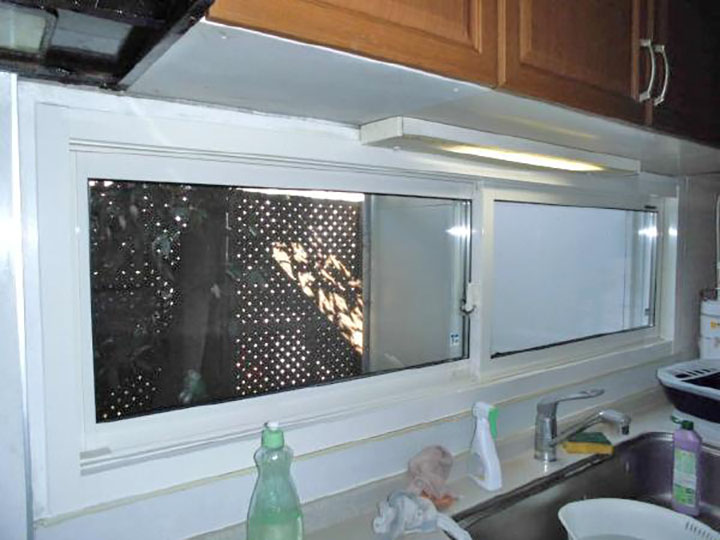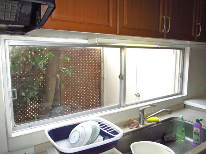 【1階キッチン】複層防犯合わせ硝子の引き違い窓に交換。製品はアルミと樹脂の複合窓エイピアJ(YKKAP製)です。